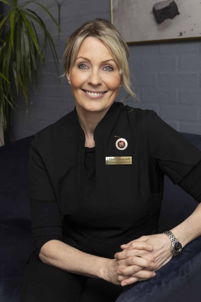 Hun vil på bedste professionelle vis, rådgive, vejlede og gøre brug af den nyeste viden og behandling indenfor det kosmetiske område. Æstetikken er i højsæde og i tæt samspil med dig, vil hun få klarlagt de ønsker du måtte have, altid med fokus på helhedsindtrykket og det naturlige resultat.